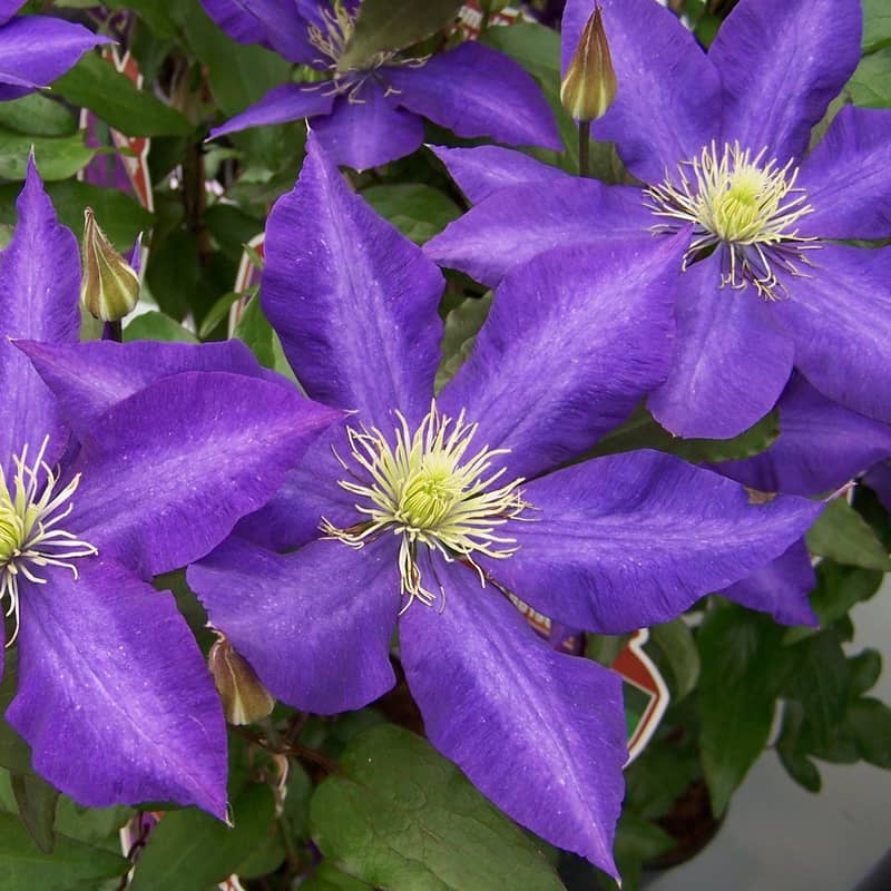 Cette clématite possède de larges fleurs bleu-violet avec un centre plus pâle. Elle est parfois semi-double à la première floraison.