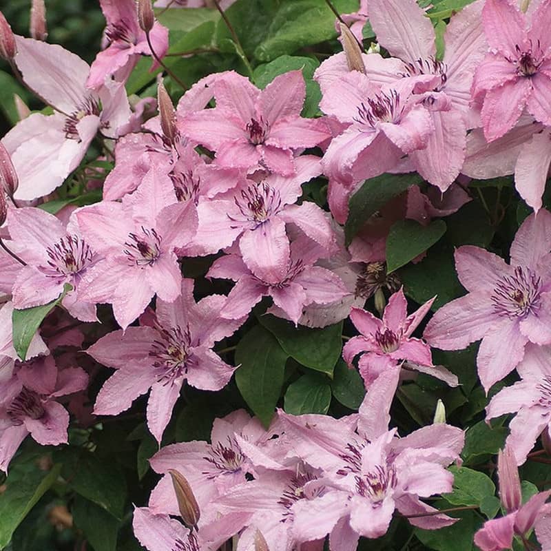 Belle clématite qui donne de nombreuses fleurs roses, de 13 à 18cm de diamètre. La floraison de ce cultivar provient principalement des tiges de l’année précédente au début de l’été, mais elle se produit également une deuxième floraison plus tard au cours de l’été sur la nouvelle croissance de l’année en cours.